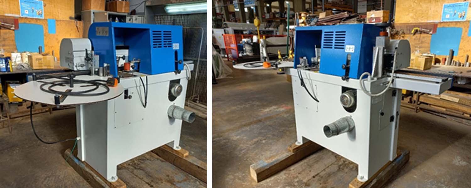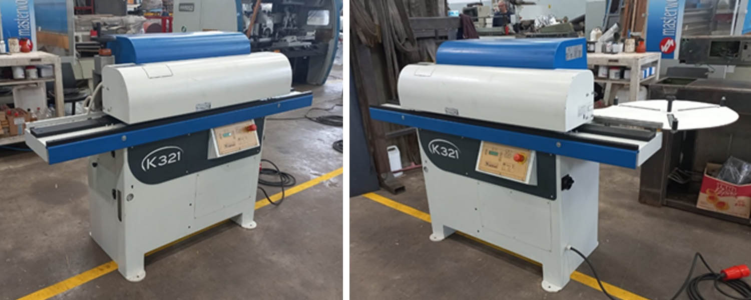 Maquina pegadora de cantos recto automática con calderin de cola. Alimentador para rollos de pvc – abs – melamina de 0,45 a 2 mm. Guía de ingreso en 3 posiciones 0,45/1/2 mm. Pegadora con avance automático. Encolador con calderín de cola. Para placas de aglomerado melamina de 10 a 45 mm de espesor. Retestador – encabezador automático. Refilador de pvc para raz chamfle matacantos o radio 2 mm. Mesa de trabajo de 1800 mm. Soporte extensible para tableros grandes con rodillos. Aspiración centralizada con boca de diam 120 mm. Maquina compacta, ocupa poco espacio